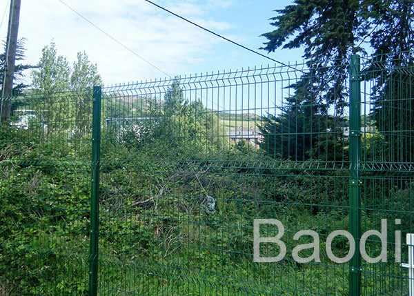 | 1。 緑の金網の塀は良質の低炭素の鋼線と、浮上します電流を通された材料上の静電気の粉の吹き付け塗装によって扱われて溶接されます。 |